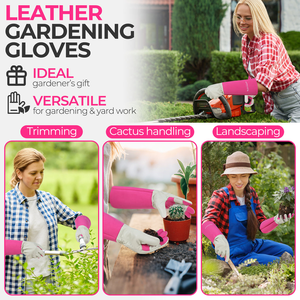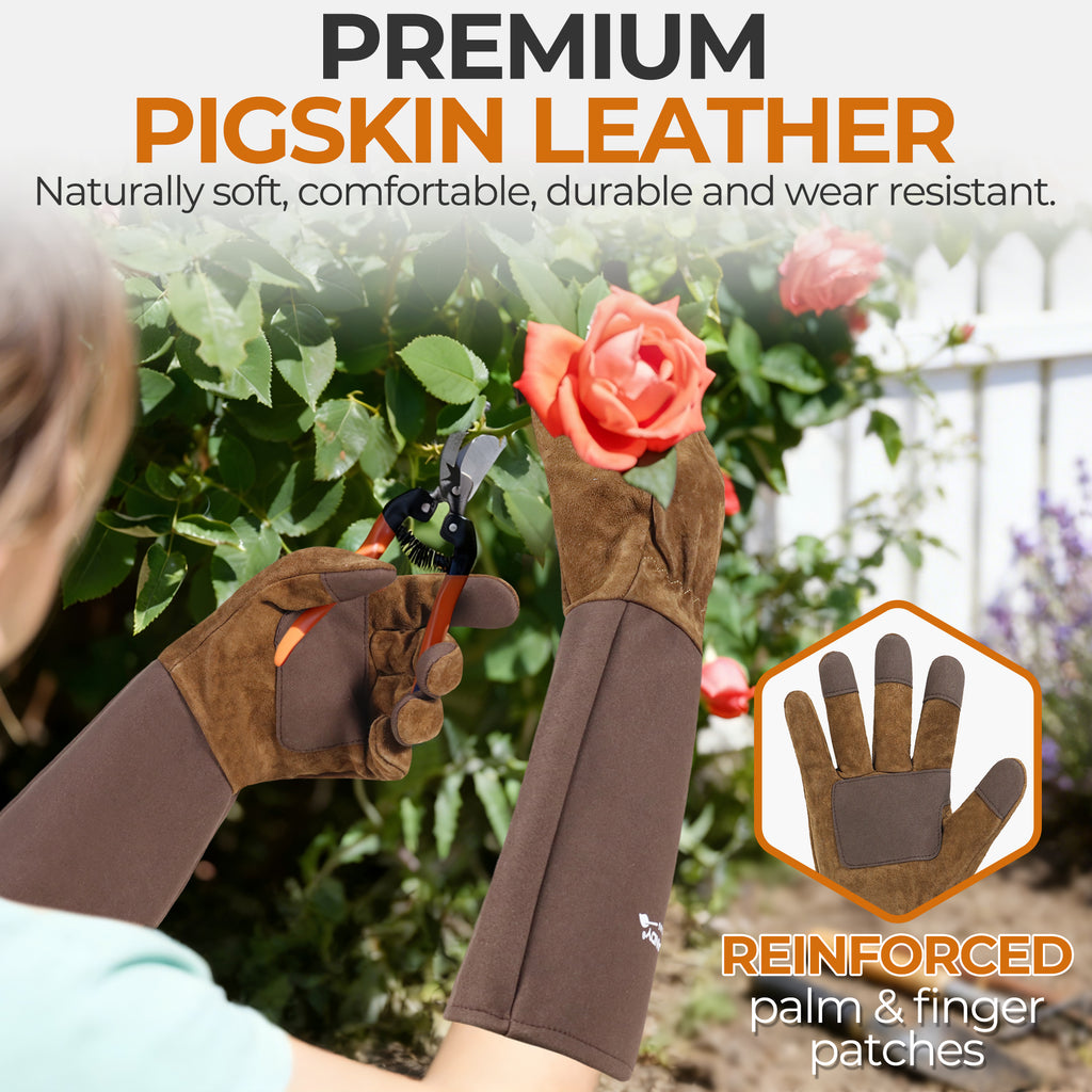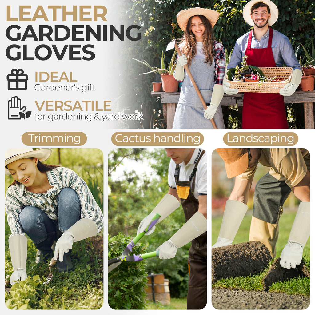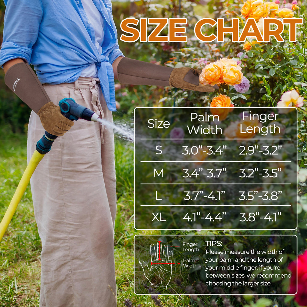 🌼Elbow-length Gauntlet Cuff: Extended pigskin leather cuff protects hands & forearms from cuts and scratches, good coverage to just below the elbow, long gauntlet gloves allowing you to free from your roses painlessly.