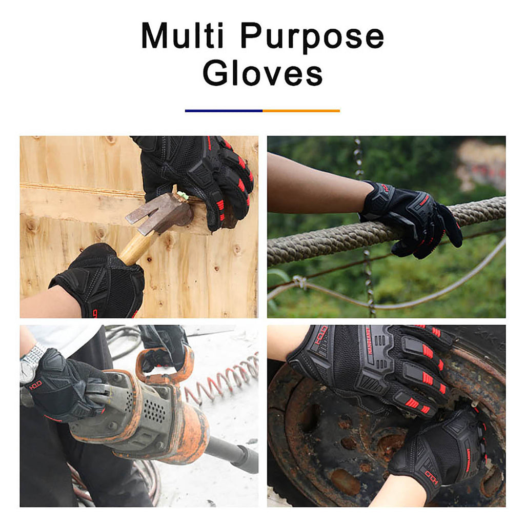 HANDLANDY Heavy Duty Work Gloves Men, Touchscreen TPR Impact Reducing Work Gloves, Non-Slip Breathable Mechanics Gloves
