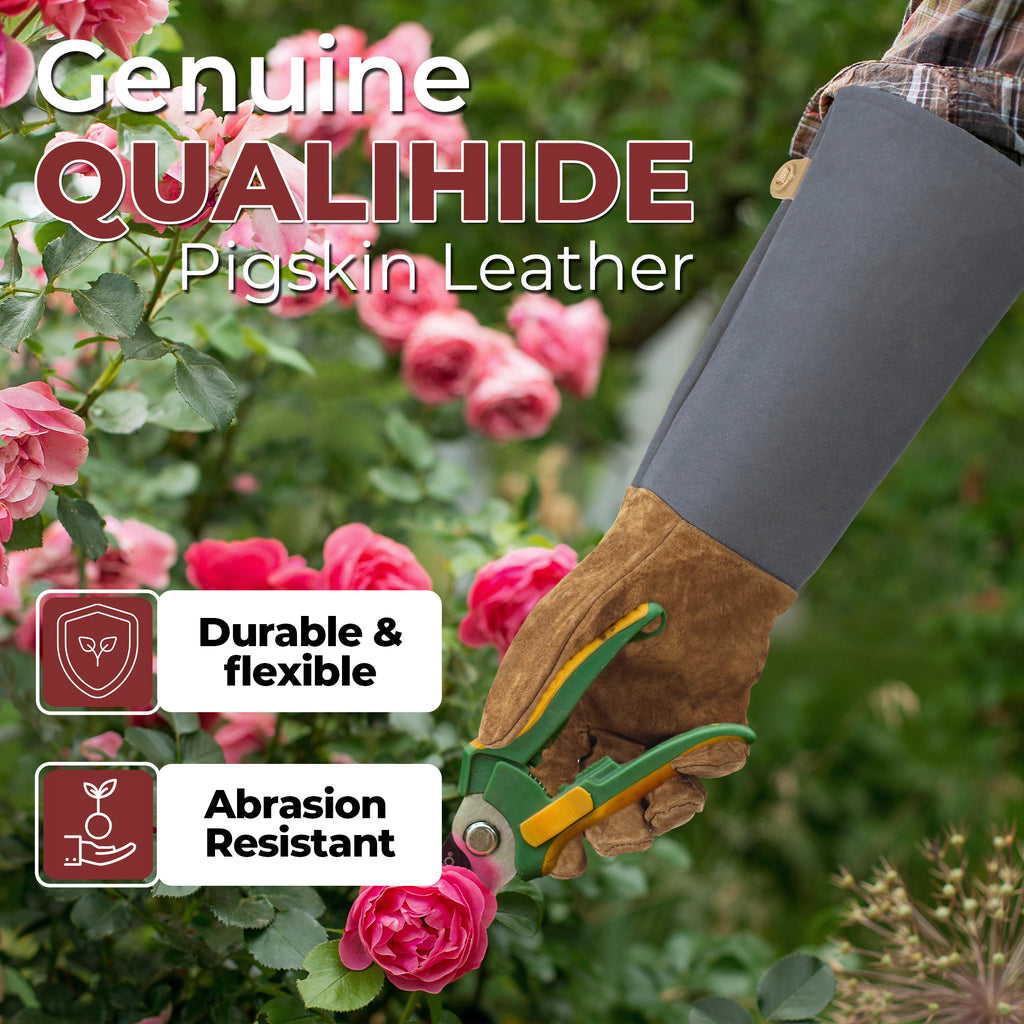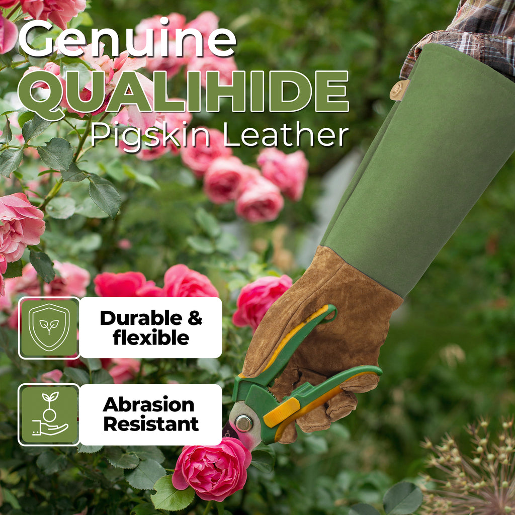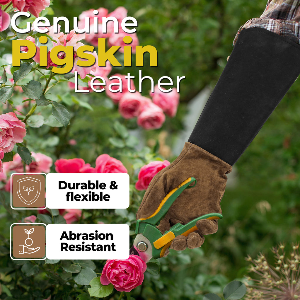 • Thorn Proof & Puncture Resistant: These rose pruning gloves offer superior protection against thorns and scratches. The thick yet supple leather ensures your hands stay protected from berry bushes, sharp branches and prickly shrubs, making them an essential tool for any gardening task
