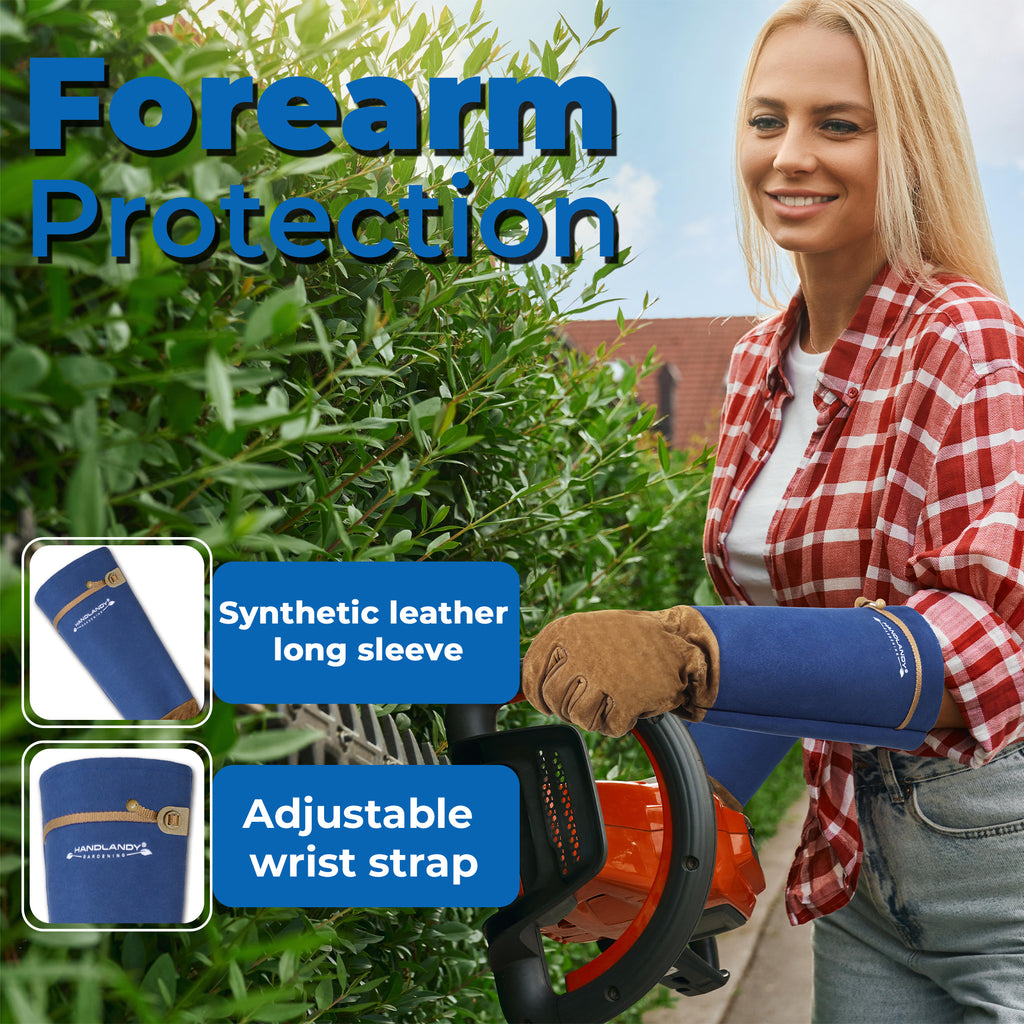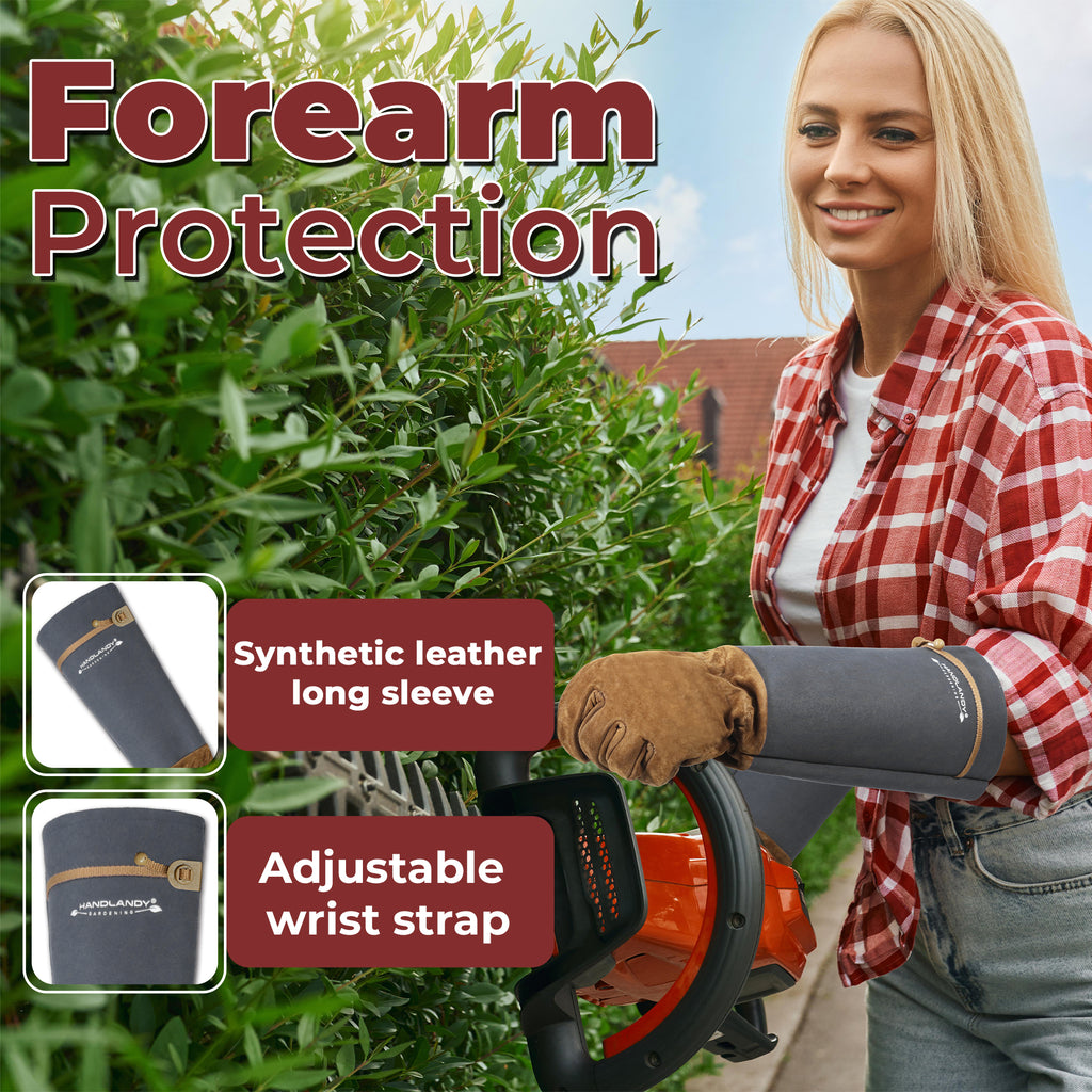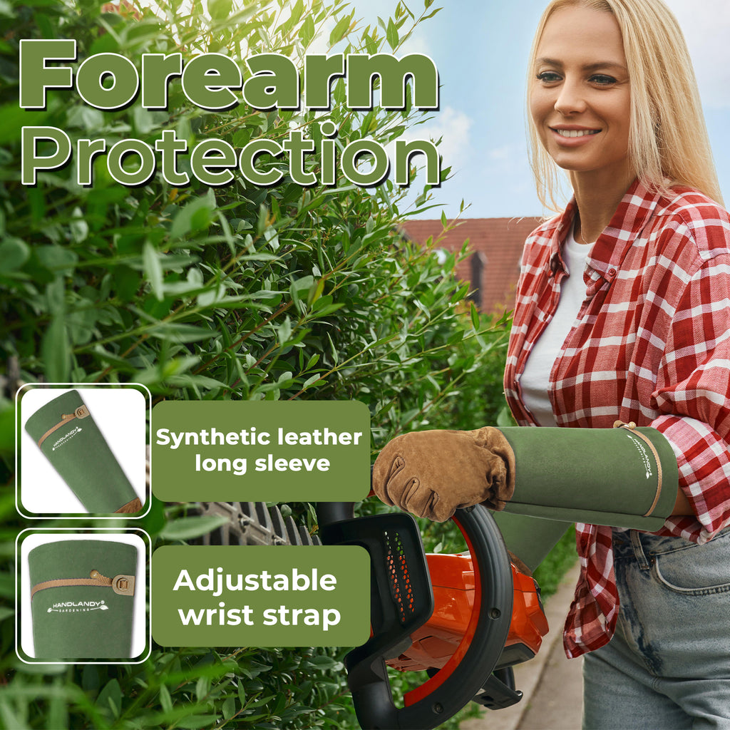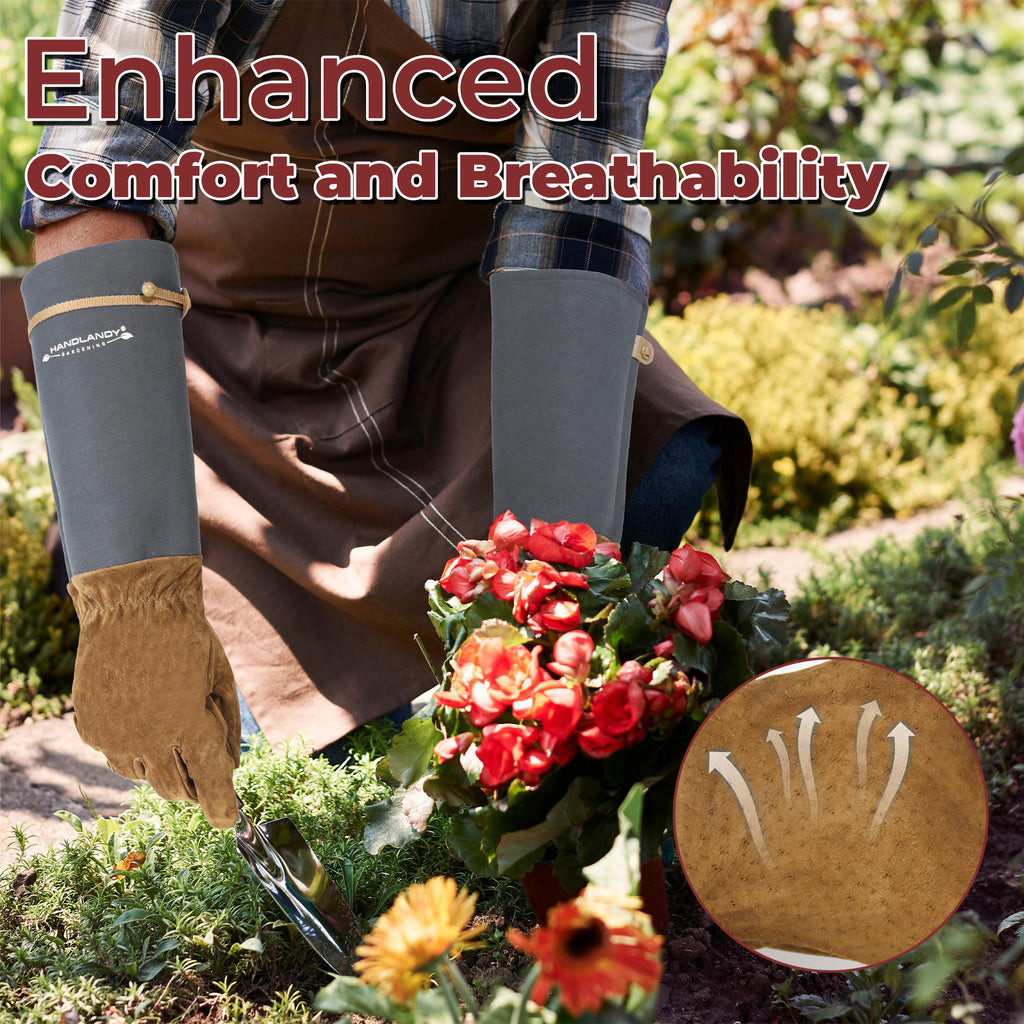 HANDLANDY Long Gardening Gloves for Men Women, Thorn Proof Rose Pruning Leather Gardening Weeding Yard Gauntlet Glove, Best Gardener Gift 5209