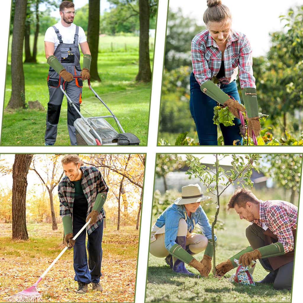 • Forearm Protection & Snug Fit: Feature synthetic leather long sleeves that extend up to forearms that protect them from cuts and scratches, keeping your hands and forearms safe and comfortable. Adjustable drawstring cuff offers a customizable fit that can be tightened to prevent debris from entering the gloves. Perfect for tasks that require reaching into dense foliage or handling thorny plants