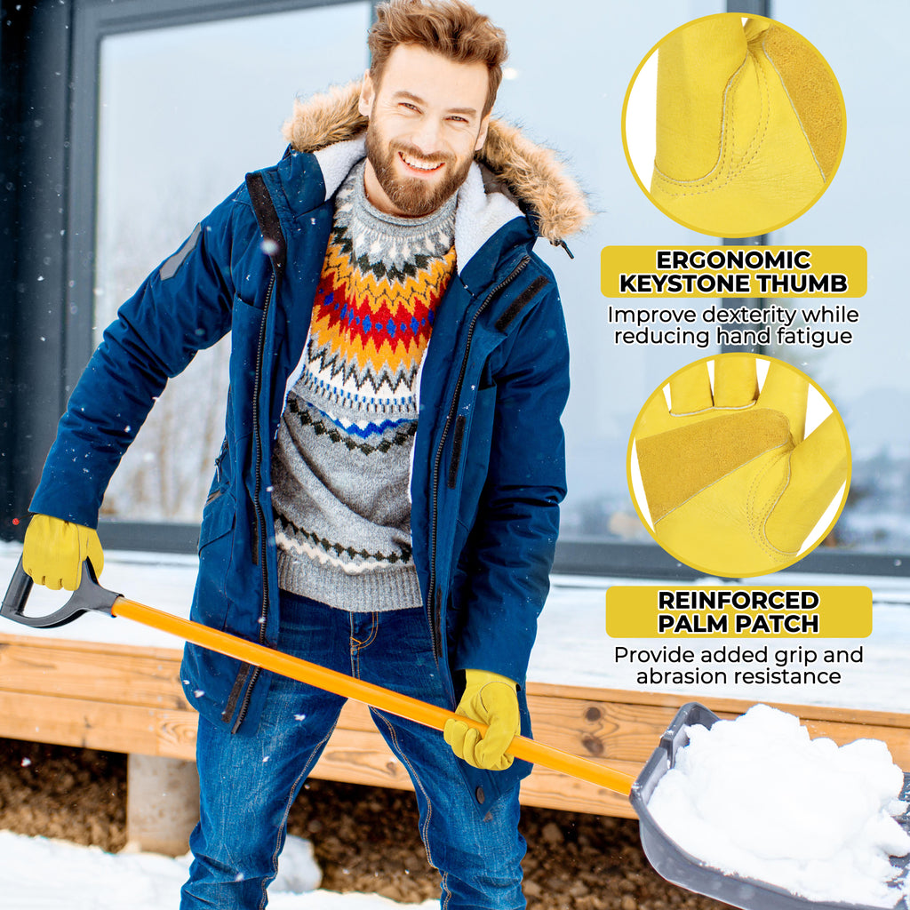 • 200g Insulation for Extreme Cold: Keep hands warm and protected in freezing conditions with insulated leather gloves featuring a thick 200g thermal lining. These warm work gloves are perfect for snow removal, ice fishing, and prolonged outdoor exposure in harsh winter weather.