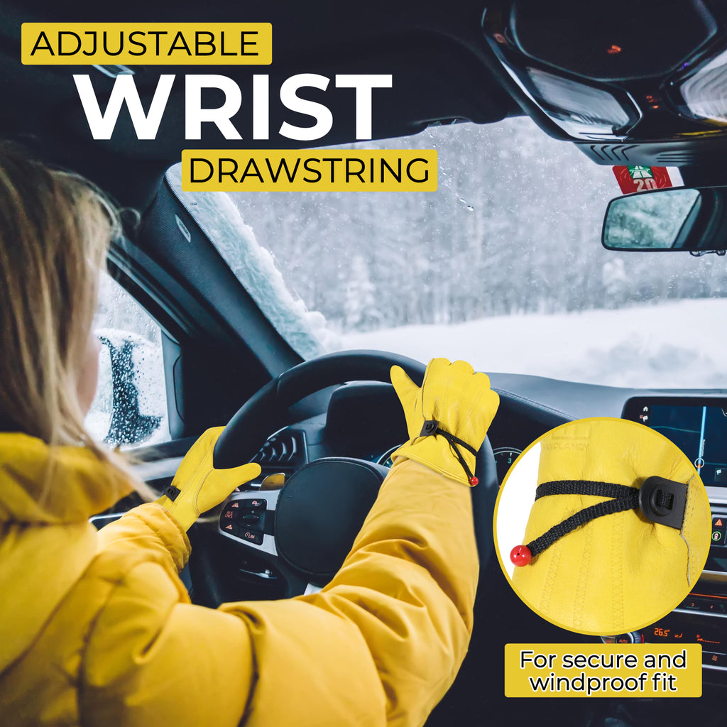HANDLANDY Winter Work Gloves for Men Women, Water Repellent Cold Weather Insulated Genuine Leather Work Gloves